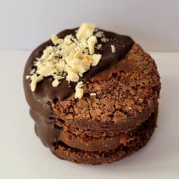 Tapas de brownie, relleno con dulce de leche. Baño de chocolate 80% cacao