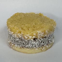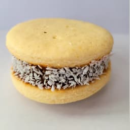 Tapas de masa de maicena, relleno con dulce de leche y bordes de coco rallado