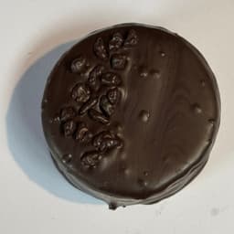 Masa sable de cacao, Relleno con ganache de chocolate y licor de menta. Baño de chocolate semiamargo. Topping: Nibs de cacao